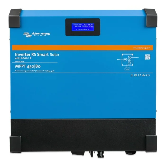 Le convertisseur RS 48/6000 230V SmartSolar, c'est un convertisseur solaire hors-réseau. C'est aussi un convertisseur, un convertisseur CC-CC bidirectionnel et un MPPT combinés ... Mais toujours aussi léger !