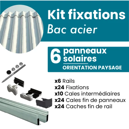 Kit de fixation NOIR ou GRIS pour 6 panneaux solaires sur Toiture bac acier, toit en tôle - PAYSAGE