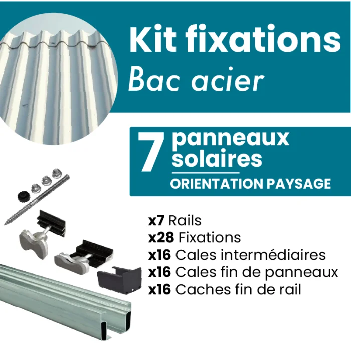 Ce kit a spécialement été conçu pour fixer jusqu'à 7 panneaux solaires sur une toiture bac acier ou en tôle. Il permettra une attache sûre et solide de vos panneaux sur votre toit.