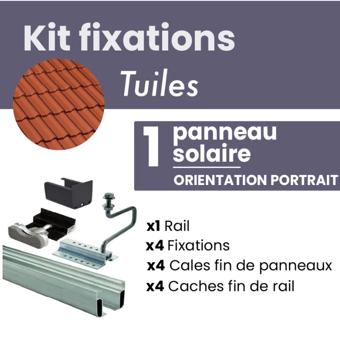 Ce kit a spécialement été conçu pour fixer jusqu'à 1 panneau solaire sur des tuiles mécaniques. Il permettra une attache sûre et solide de votre panneau sur le toit.