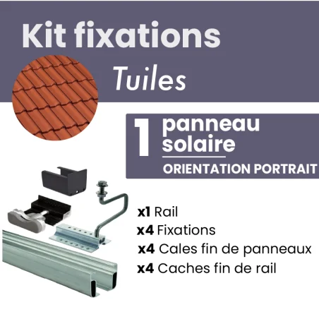 Kit de fixation NOIR pour 1 panneau solaire sur tuiles mécaniques - PORTRAIT