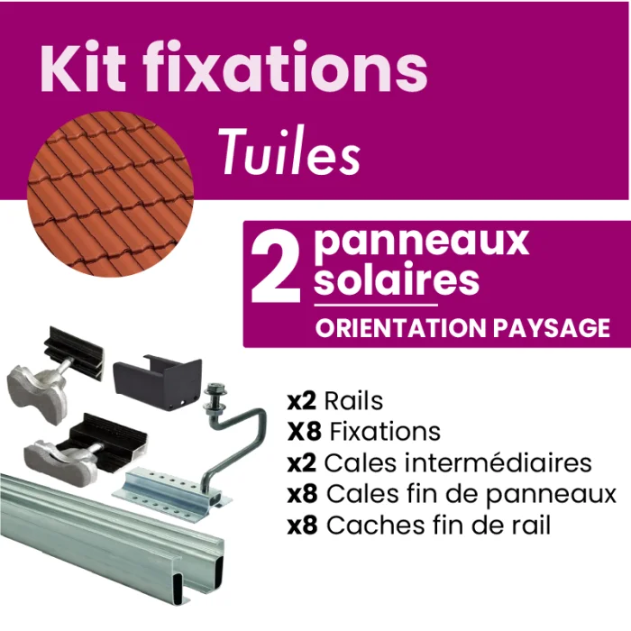 Ce kit a spécialement été conçu pour fixer jusqu'à 2 panneaux solaires sur des tuiles mécaniques. Il permettra une attache sûre et solide de vos panneaux sur votre toit.