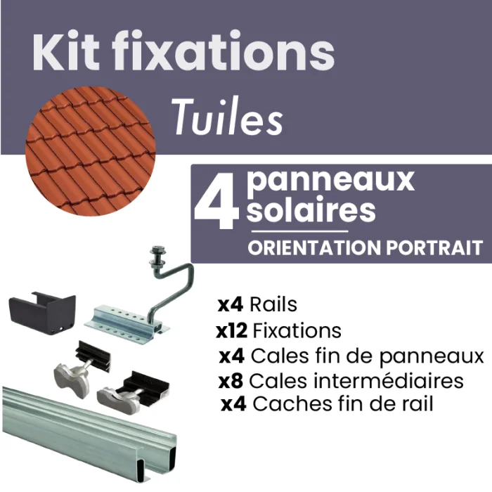 Ce kit a spécialement été conçu pour fixer jusqu'à 4 panneaux solaires sur des tuiles mécaniques. Il permettra une attache sûre et solide de vos panneaux sur votre toit.