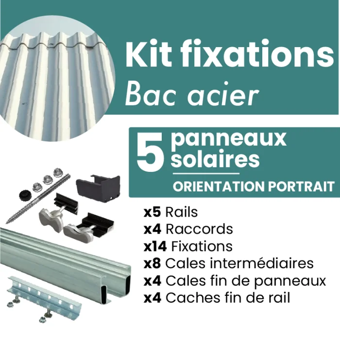Kit de fixation NOIR pour 5 panneaux solaires sur Toiture bac acier, toit en tôle - PORTRAIT