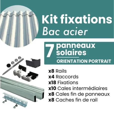 Ce kit a spécialement été conçu pour fixer jusqu'à 7 panneaux solaires sur une toiture bac acier ou en tôle. Il permettra une attache sûre et solide de vos panneaux sur votre toit.