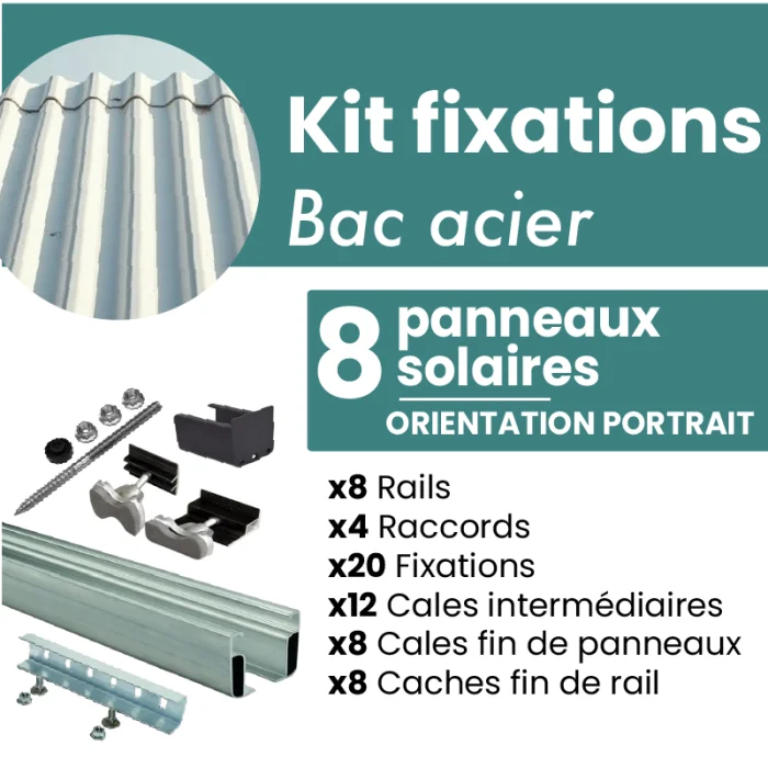 Kit de fixation NOIR pour 8 panneaux solaires sur Toiture bac acier, toit en tôle - PORTRAIT