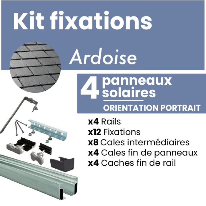 Kit de fixation pour 4 panneaux solaires sur Toiture ardoise - PORTRAIT