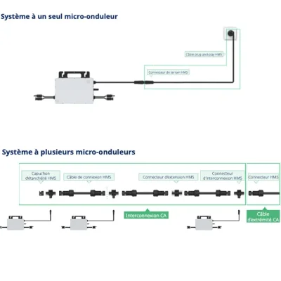 Spécialement conçus pour les systèmes de petite à moyenne taille (balcons, toitures partielles...), ils disposent de 2 entrées MPPT et d'une fonctionnalité WiFi intégrée. Efficacité, fiabilité et surveillance de production en temps réel garanties !