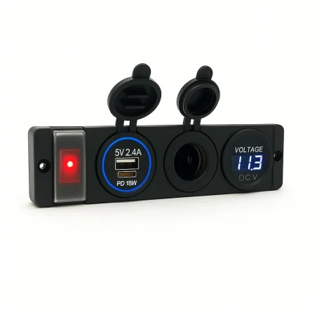 Tableau 12V PANEL SOLAIRE (Inter + USB double mixte + allume-cigare + volmètre digital)