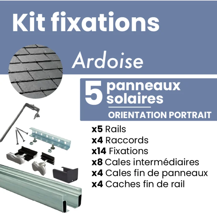 Kit de fixation pour 5 panneaux solaires sur Toiture ardoise - PORTRAIT